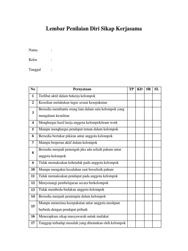 Lembar Penilaian Diri Sikap Kerjasama Pdf
